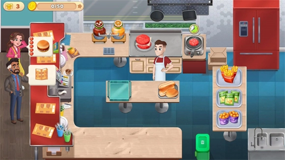 2、餐厅经营:玩家能够自主经营餐厅,涵盖设备的装修与升级、新餐厅的开设等方面。借助提升做菜速度以及调整菜品价格,能够吸引更多顾客,进而获取更高收益。