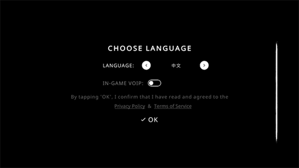1、首次进入游戏时,会显示语言选择界面,选择中文即可