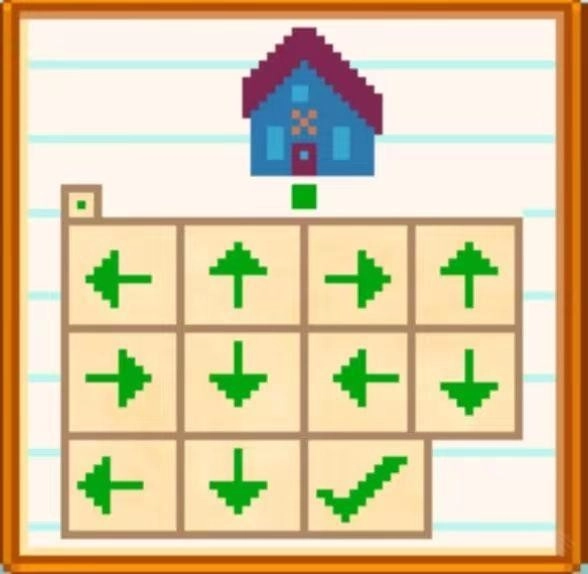 秘密纸条#19(位置在1柳巷,乔迪和山姆的家门口。从图中门口绿色方块处出发,顺着第一个箭头的指向一直前行,直至遇到障碍物无法再走,接着朝着第二个箭头的方向行进,如此循环,最后会在镇长刘易斯家屋后找到刘易斯黄金雕像。)