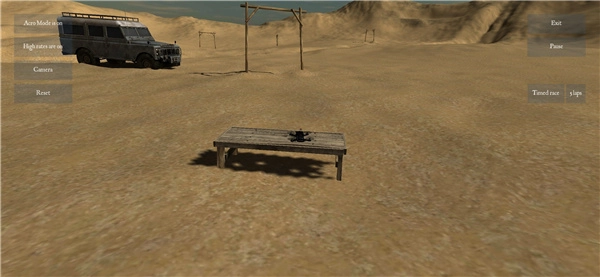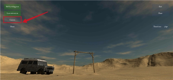 2、进入之后,能看到左侧依次为自调平开启、高帧率开启、第三人称视角以及最后的重置;右侧是退出按钮与暂停按钮。