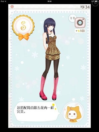 3、玩家可以与好友比拼搭配衣服的本事,要是搭配得不尽人意,可是会遭到宠物大喵毫不留情的吐槽呢。