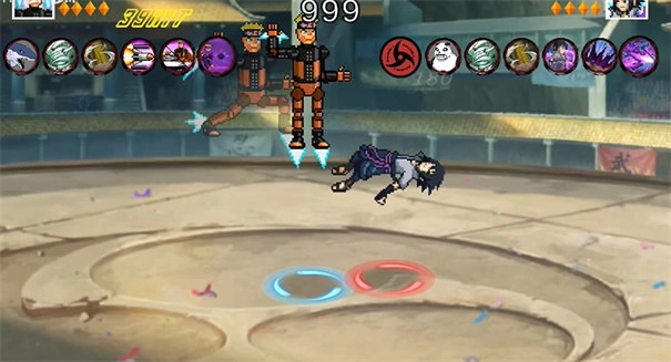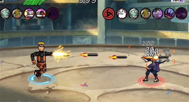1、完美采用像素图形还原了各个忍者的格斗特技,更是有着原版的声优配音,格斗的时候热血感十足。
