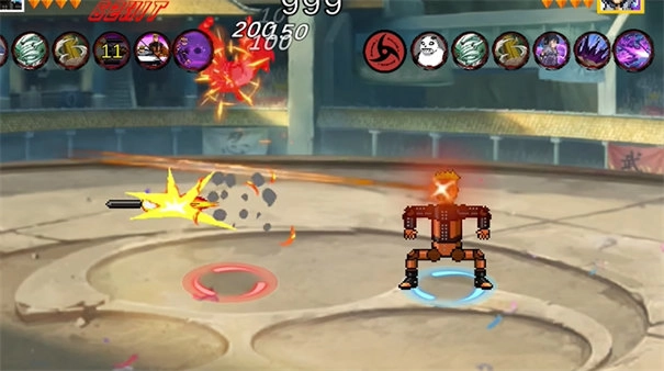 像素火影机械鸣人版是一款自制的像素格斗同人游戏。它以《火影忍者》为蓝本,借助像素风格将每位忍者及其技能招式一一还原,使玩家得以尽情享受指尖上的竞技格斗乐趣。