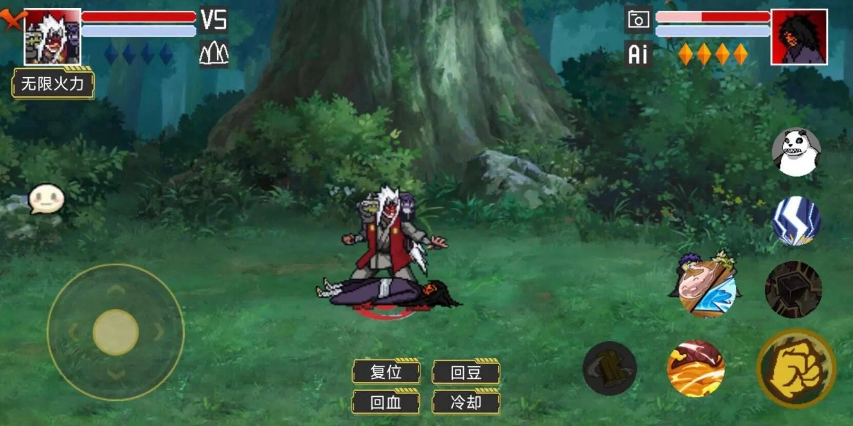 《像素火影:自来也仙人模式》是一款以像素火影为题材的格斗竞技类游戏。游戏会不定时更新,推出全新角色供你选用。在“自来也仙人模式”玩法中,你能操控自来也,与形形色色的火影角色展开对决。玩家还能够打造属于自己的专属技能连招,使战斗体验更为流畅顺滑,释放出酷炫技能,战胜各路对手。喜爱这款像素火影游戏的玩家,赶紧前来下载畅玩吧!