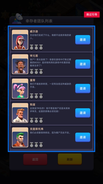 目前仅能招募D级的,待后续升级后,便可招募更为强大的幸存者。