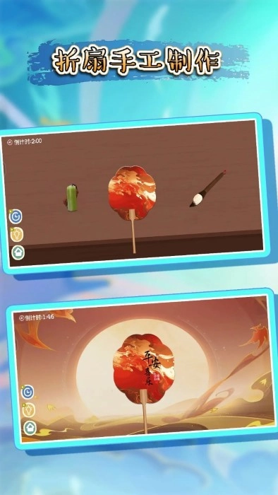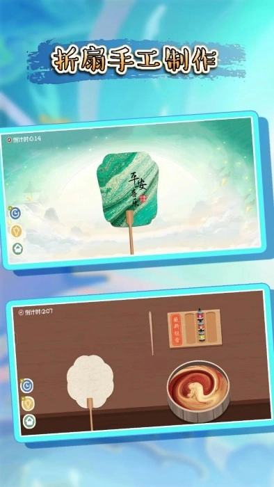 全新版折扇手工制作游戏别具一格,带你深度探寻这门古老典雅的艺术。当你完成折扇相关内容的下载,便能亲身感受年轻艺术家与创作者们如何于方寸之地绽放无尽创意。每一把折扇,皆是历史的见证者、文化的承载者,更是现代技术与传统文化完美交融的象征。