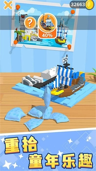 积木世界个性创造,一款超有趣的休闲益智建造游戏!无论你是渴望锻炼大脑,还是想重温童年那独有的惊奇感,它都能完美满足你。只需抽出些许时间,放松身心,尽情堆砌砖块即可。完成一套组合,就能解锁特殊的黄金包裹,凭借更高难度的模型增添全新元素,惊喜永远在前方等你。快来体验吧!