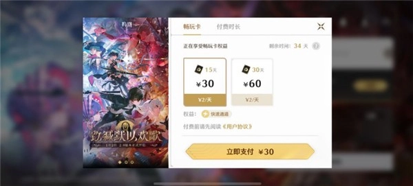 3、畅玩卡:测试期间提供30元/15天与60元/30天两个档位。