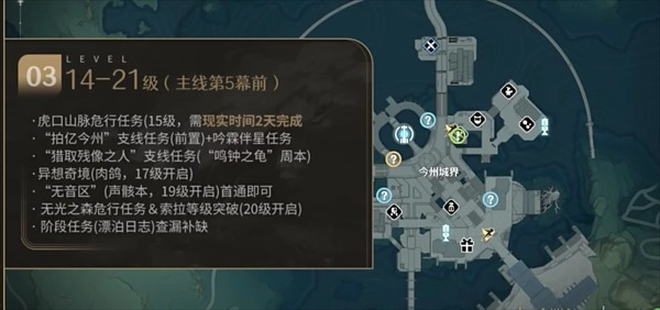 主线第四幕已完结,第五、六幕需在角色达到21级时开启。在此之前,还需跨越20级突破索拉等级这一门槛,战线由此拉长。在这个等级区间内,漂泊者开始拥有一些自由时间用于探索,有几个能获取较多经验的地点,可供漂泊者优先选择来获取经验。
