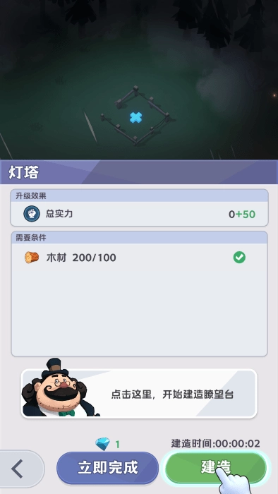 点击“开始建造”,每个建筑物都会显示时间进度。