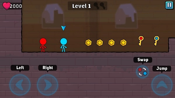 3、玩家在游戏里面需要帮助红色和蓝色的两个小人,