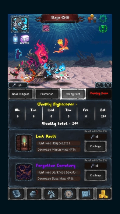 闲置的《野兽猎人》手机版,为你带来一场别样的闲置冒险游戏体验。它有着自动增量的像素艺术砍杀玩法,而且完全免费,让你尽情畅玩闲置游戏!当世界遭受野兽的疯狂入侵,一群勇敢的野兽猎人就此觉醒,他们挺身而出,只为守护世间仅存的美好。