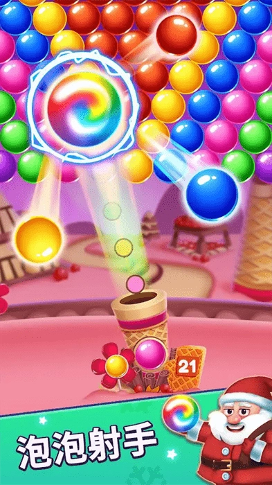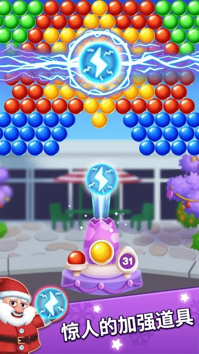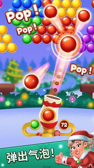 1在游戏里,玩家会和圣诞老人一同参与泡泡射击消除类游戏。