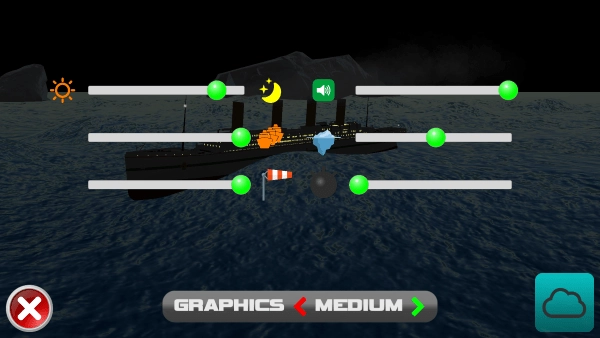 点击那个设置按钮,里面可对天气状态、白天黑夜以及是否有浪花等功能进行设定。