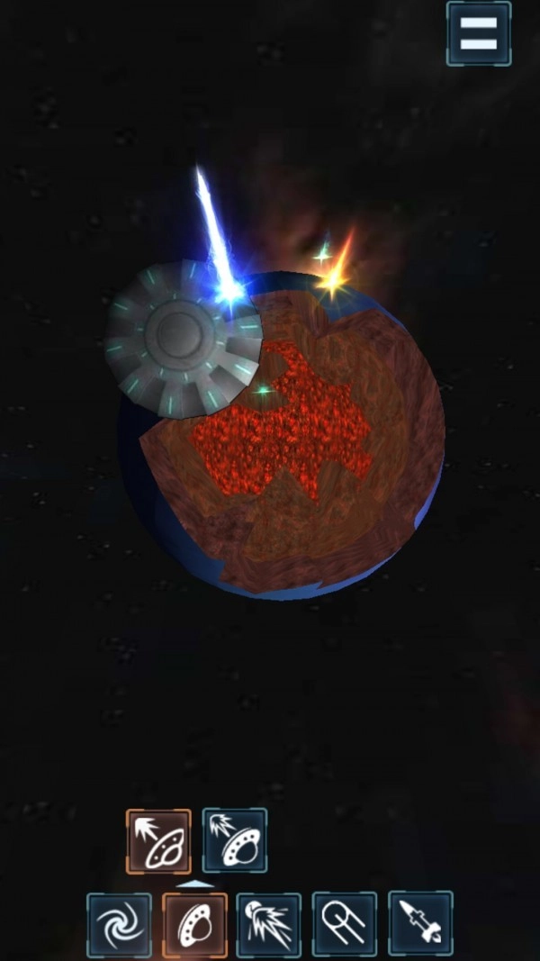 2.随心所欲给星球制造灾难,袭击星球,让它们绚丽的爆炸,从而走向灭亡。