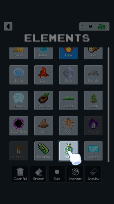 - 沙盒:起始于一个空白的盒子,在其中运用各类元素展开构建、混合及创造。去留意每个元素与其他元素是怎样相互作用的,以及它们如何受到物理和化学因素的影响。此外,你能够利用元素去破坏自己的创作成果,进而产生视觉上令人愉悦的反应。