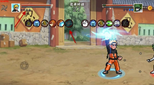 3、进入对战之后,中间会显示一个倒计时的时间,如果规定时间内没有忍者死亡,则根据最终的血量判断胜利方。