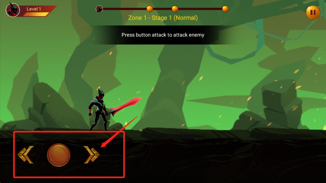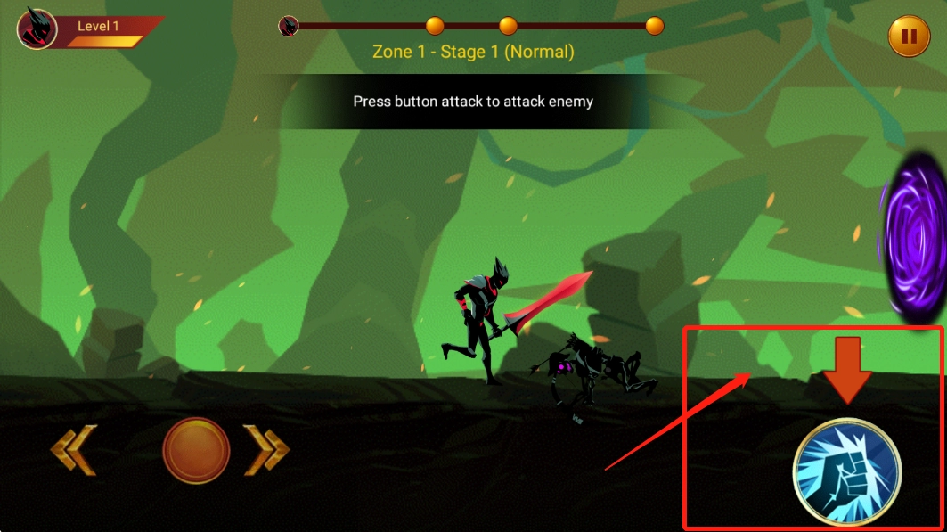 2、点击右侧可以攻击。