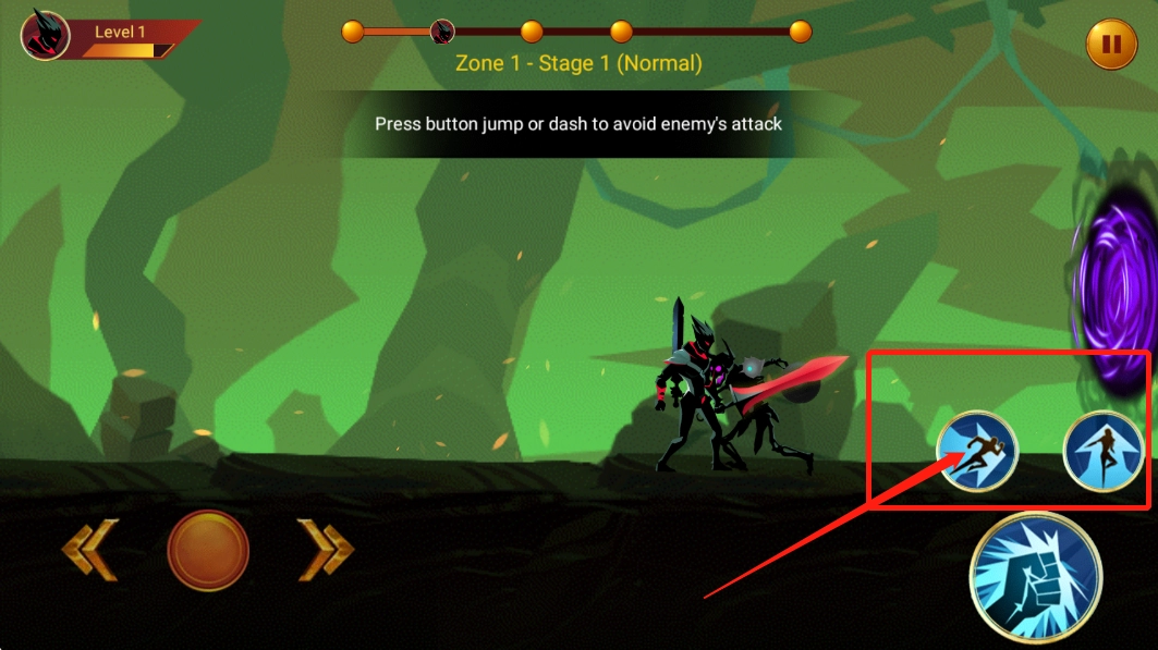 3、点击上方的可以跳跃和冲刺。