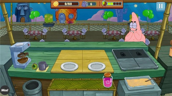 3、制作《海绵宝宝》动画中的美食,享受有趣且快节奏的料理游戏体验。