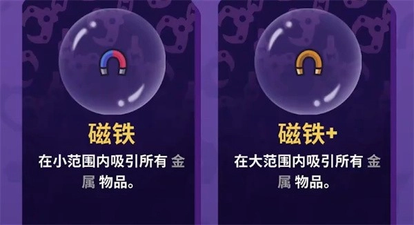 能够直接吸纳周边的金属物品,当等级得到提升后,吸纳范围会随之扩大。如此一来,一次抓取便能获取更多道具,而且还能够与迈达斯之手协同配合使用。