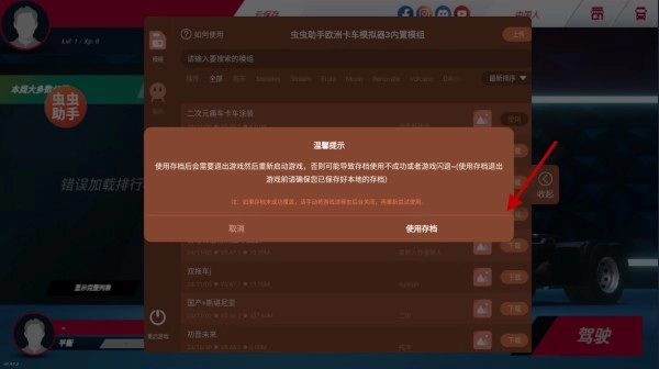 3、下载好之后就会自动弹出提示,点击使用存档之后就会自动的重启游戏。
