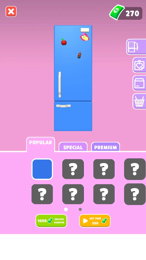 6、在商店里,钞票能够用来解锁新冰箱,还能购买贴纸用于装饰冰箱。
