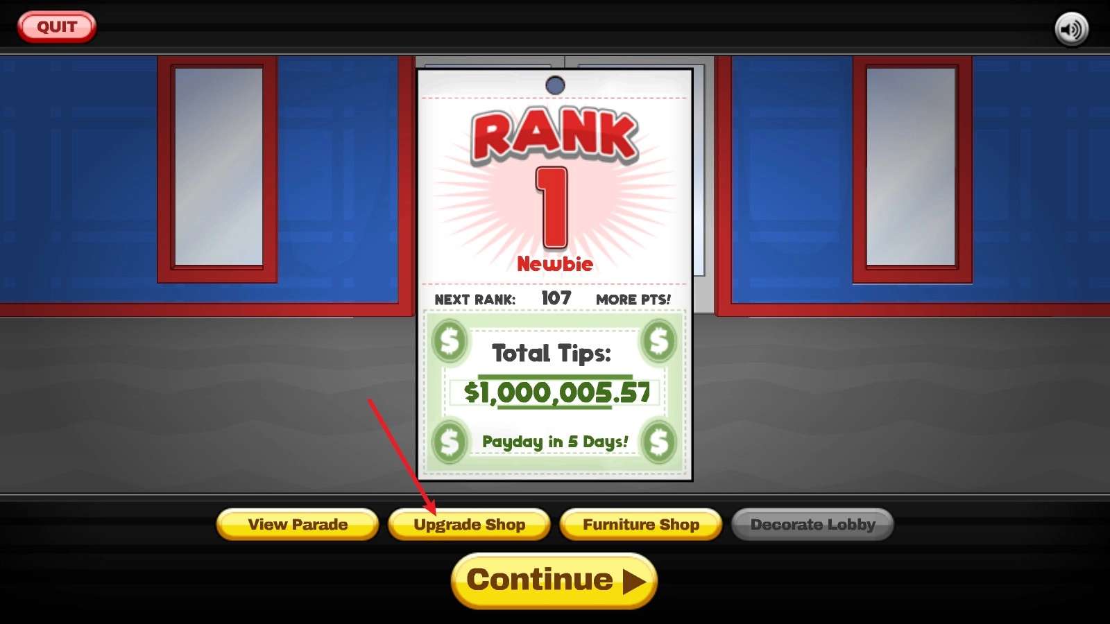 1、每天结算后的界面下方设有两个商店,分别为Upgrade shop和Furniture shop。