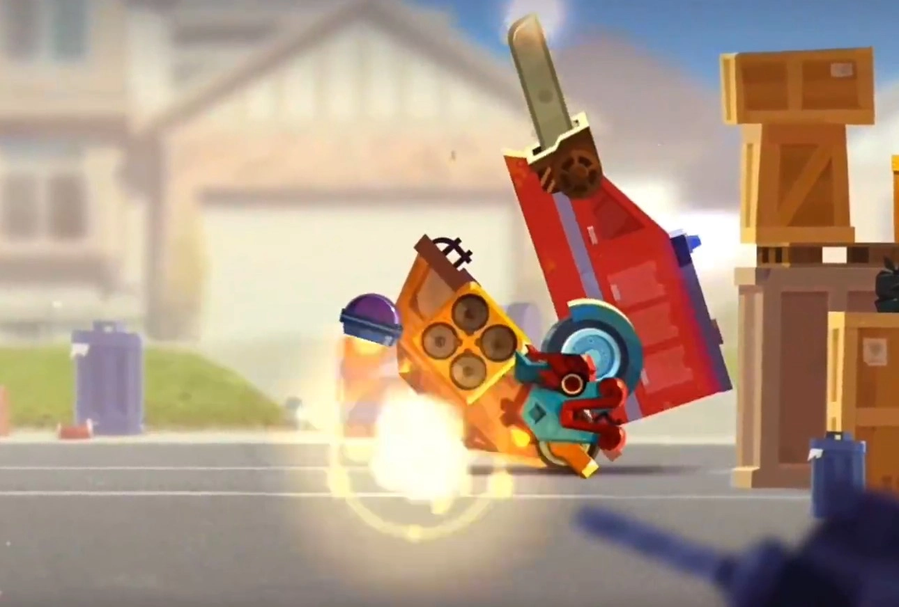 这个战车可以通过移动让敌方战车翘起来,将对方卡在墙上,然后用武器持续输出攻击。