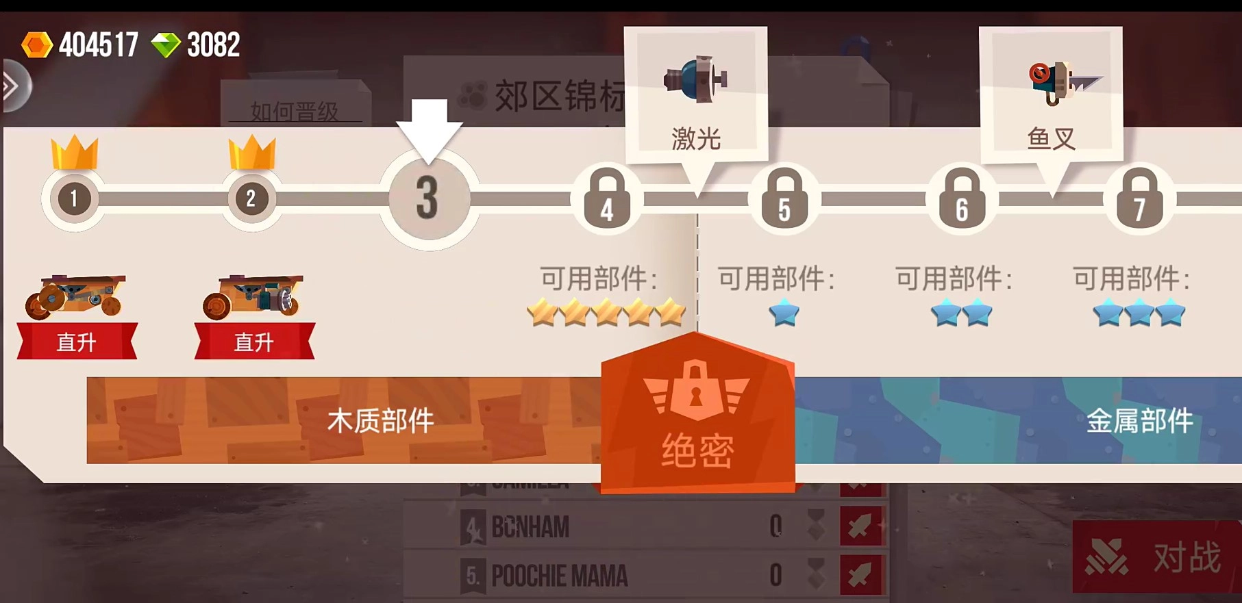 3、参与全球竞技场挑战,冲击排名,晋级还能解锁稀有配件。