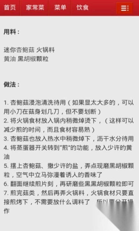 选择做法即可浏览到所有的菜谱信息,覆盖所有的菜谱;