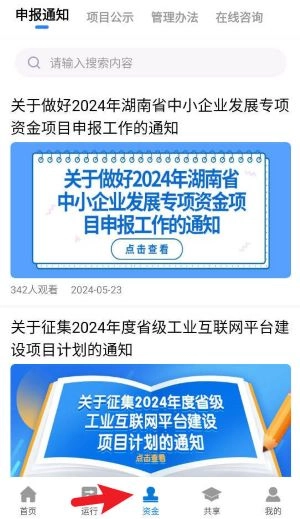 2、在“资金”页面,会呈现政策申报通知以及资金扶持相关信息,企业能够迅速知晓最新项目的申报时间与条件。