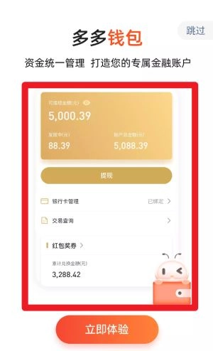 5、进入“多多钱包”,可查看账户余额及交易记录。同时,该钱包支持提现操作与银行卡绑定,助您轻松管理资金。