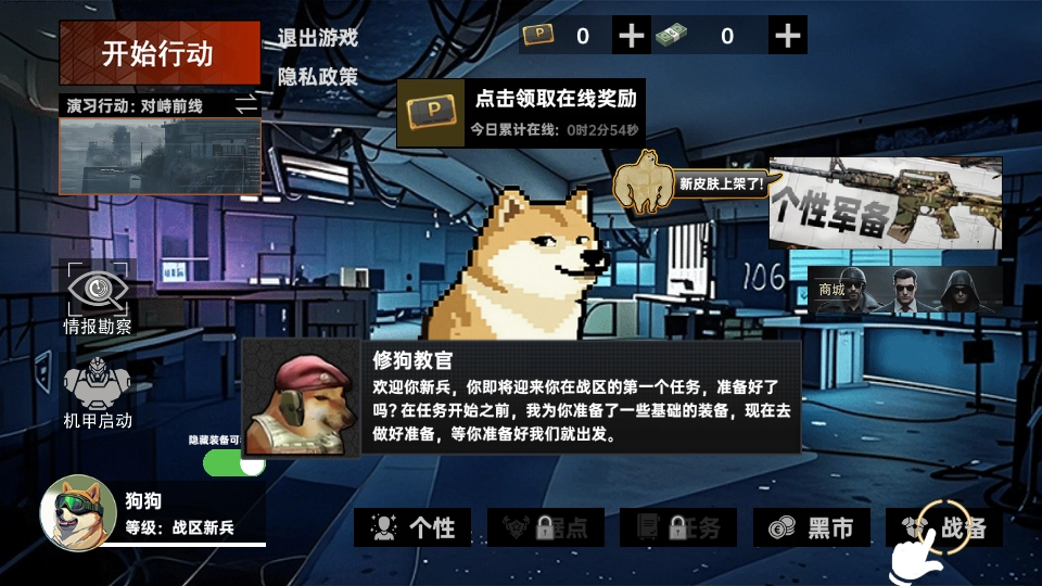 1、主界面点【战备】,遵修狗教官指引,启动任务装备筹备。