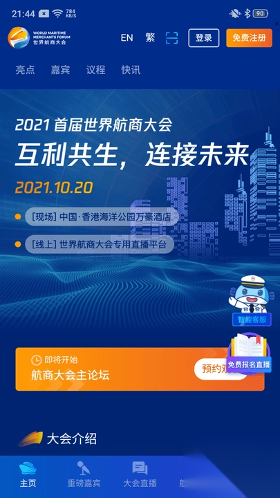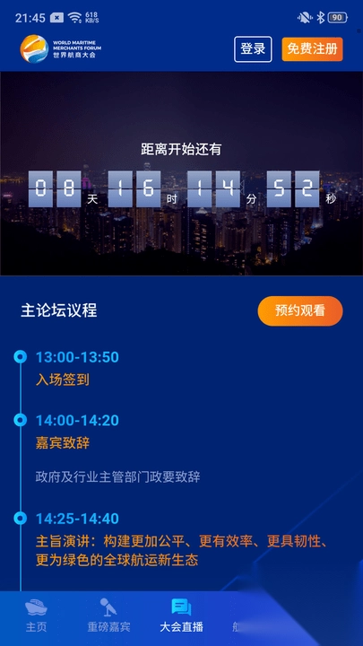 1.针对电脑用户与手机移动端用户,提供差异化接入方式。现在,用户能够开启线上报名注册流程,而且还能提前预约观看大会主论坛直播以及航商直播。