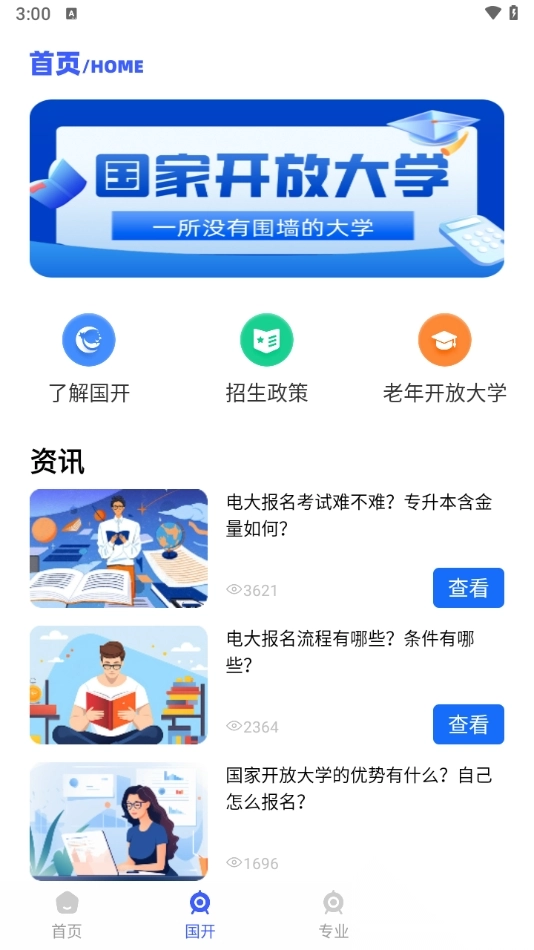 2、另外,这里还准备了国家开放大学的相关内容,涵盖各类当下热门的国开资讯,像招生信息、老年开放大学等内容都已整理完毕,您直接打开就能快速了解!