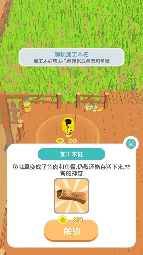 把鱼苗养大后进行收集,在木桩位置将其加工成鱼肉和鱼骨,鱼肉用于盈利,鱼骨则用于战斗资源储备。