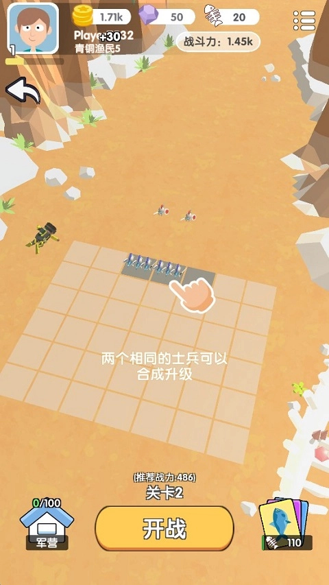 两名同级士兵能够合成为更高级别的兵种,进而提升战力上限。要记得优先对主力兵种进行升级。