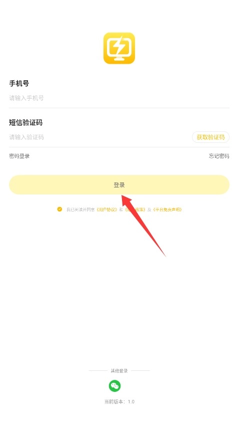 3、在登录界面输入手机号码并获取验证码,填写正确校验信息后点击登录按钮完成认证。