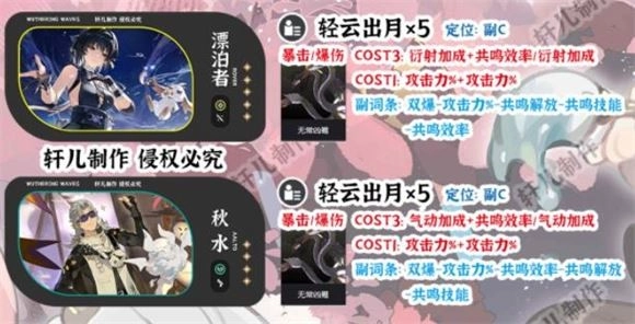 折枝:副C偏向辅助类型的角色,自己本身输出能力较弱,更加倾向于辅助主C增强技能伤害或者冷凝伤害。对于今汐这类以共鸣技能为主体伤害、凌阳这类高额冷凝伤害角色,可以起到增伤的作用,综合泛用性较高。