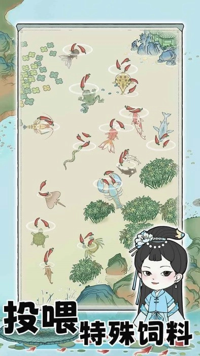 《荷塘争霸》最新版本是一款古风模拟经营类游戏,玩家将置身于荷塘之中饲养各类活物,致力于养成称霸荷塘的存在!在游戏里,玩家能够购置并运用形形色色的装饰品,像花朵、石头、水晶等等。不仅如此,还能投喂多种食物给水中生物,促使自己期望繁殖的生物去战胜其他动物。