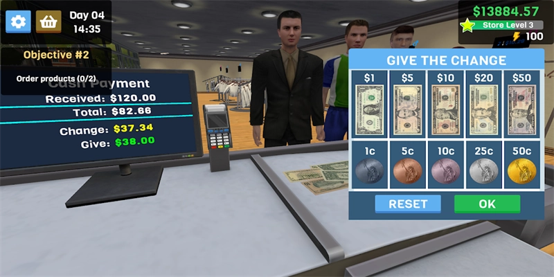 1玩家将在超市场景中,负责采购、销售以及员工管理等各项任务,以此感受真实的超市业务运作流程。