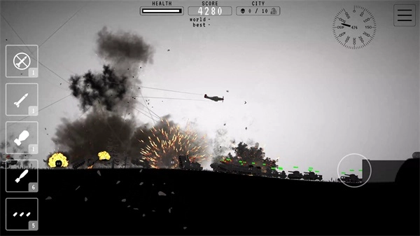 4. 高自由度操作体验:玩家能够依据任务需求,自主调节轰炸机的飞行路线与攻击方式,尽情施展战术智慧。