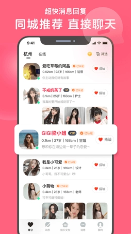 2. 在线列表:24小时为你展示当前在线的TA,从此与寂寞说再见