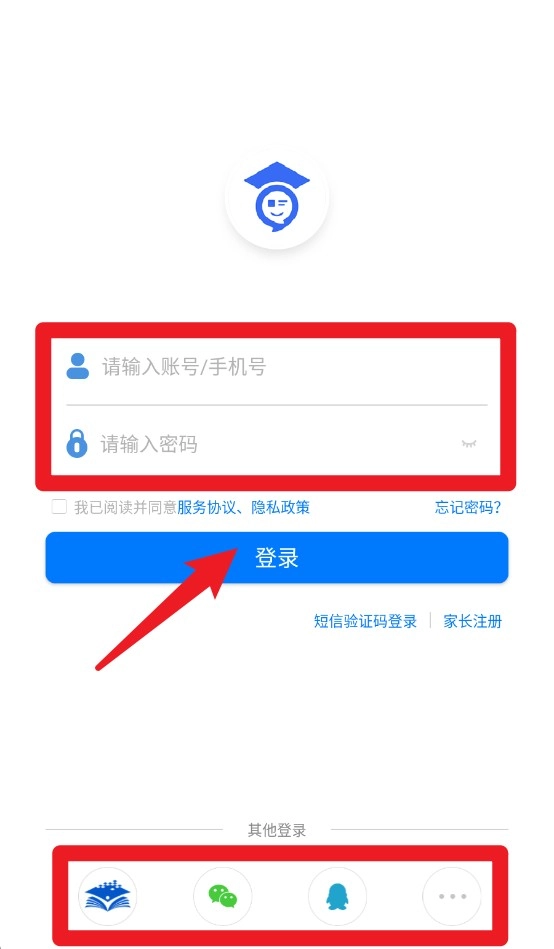 1、登录页面支持账号密码输入及多平台快捷登录,登录前需勾选同意相关协议。