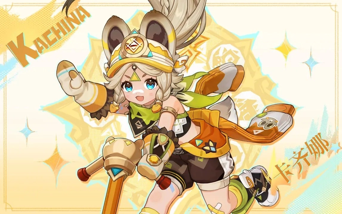 「斑金矿朴 · 卡齐娜(岩)」,纳茨卡延的年轻勇士,使用长柄武器的四星岩元素角色。
