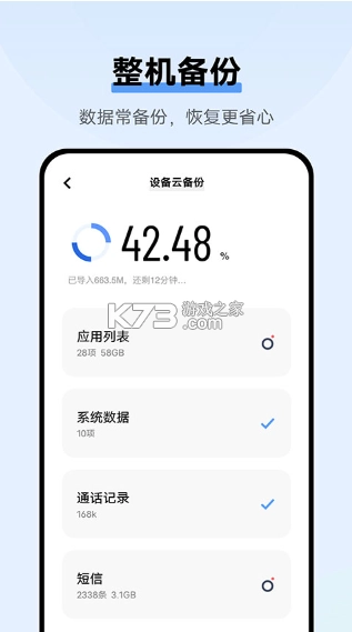 1、可设置自动备份照片、联系人等数据,无需手动操作,避免数据丢失风险