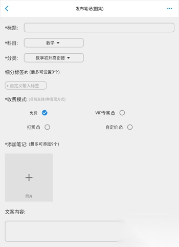 4、设置发布参数:确定分类科目与收费模式,提交内容,审核通过后即可获取相应报酬。