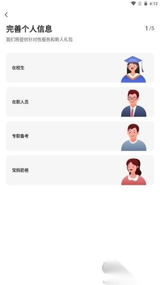 2、登录后需要完善个人信息,点击一个符合你情况的选项