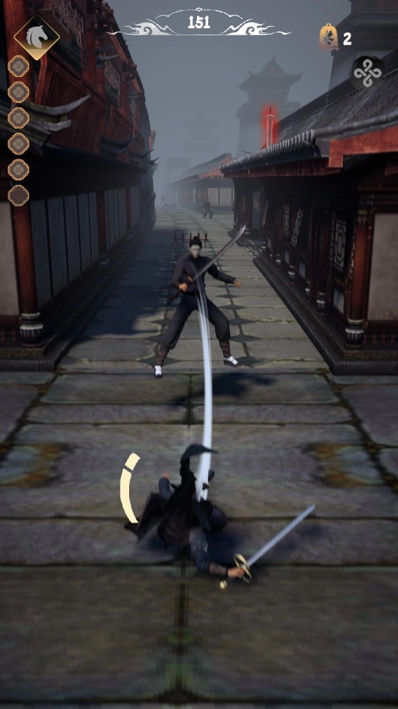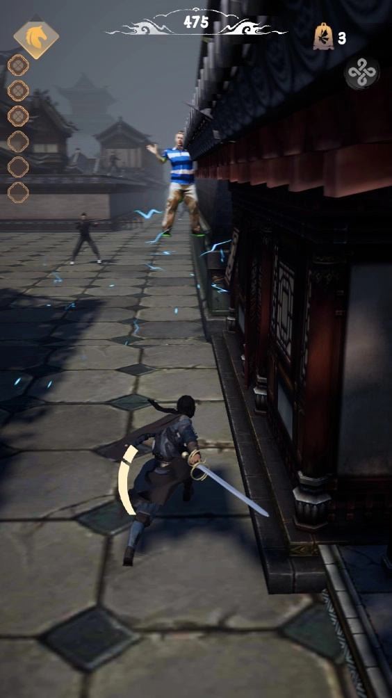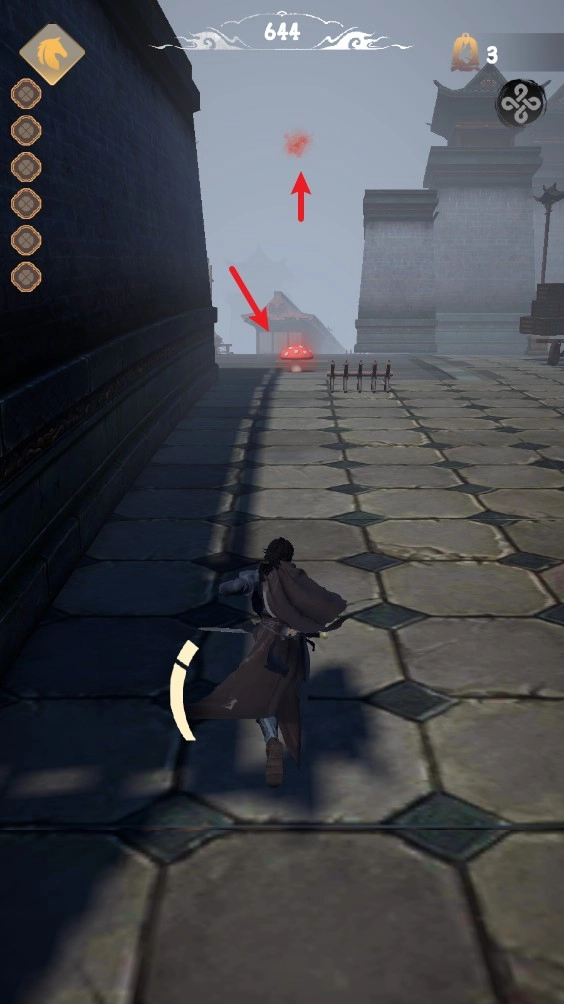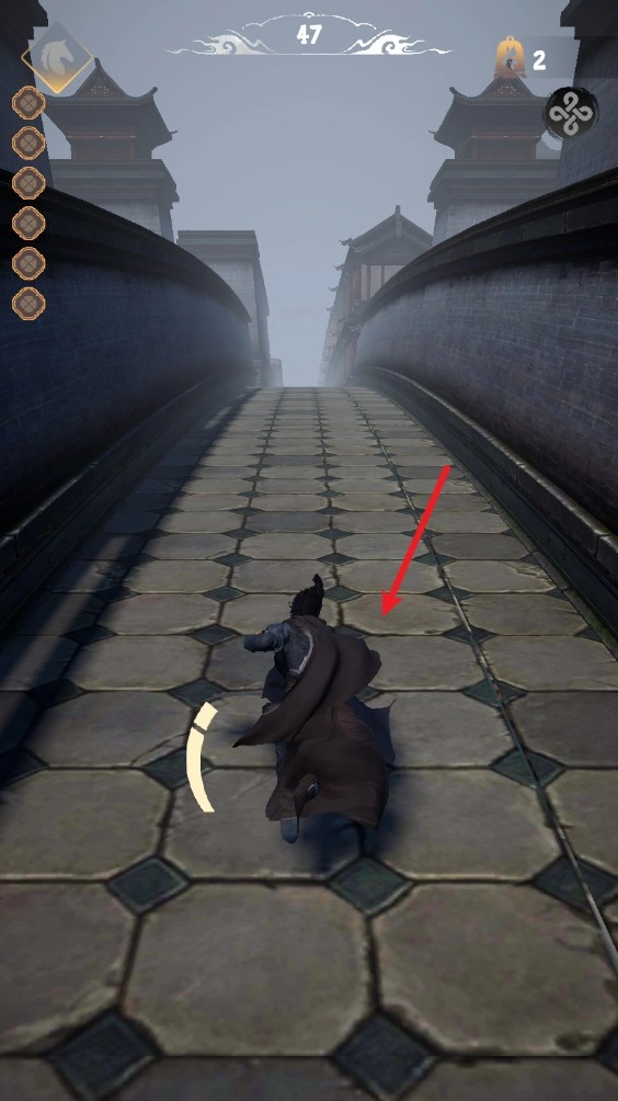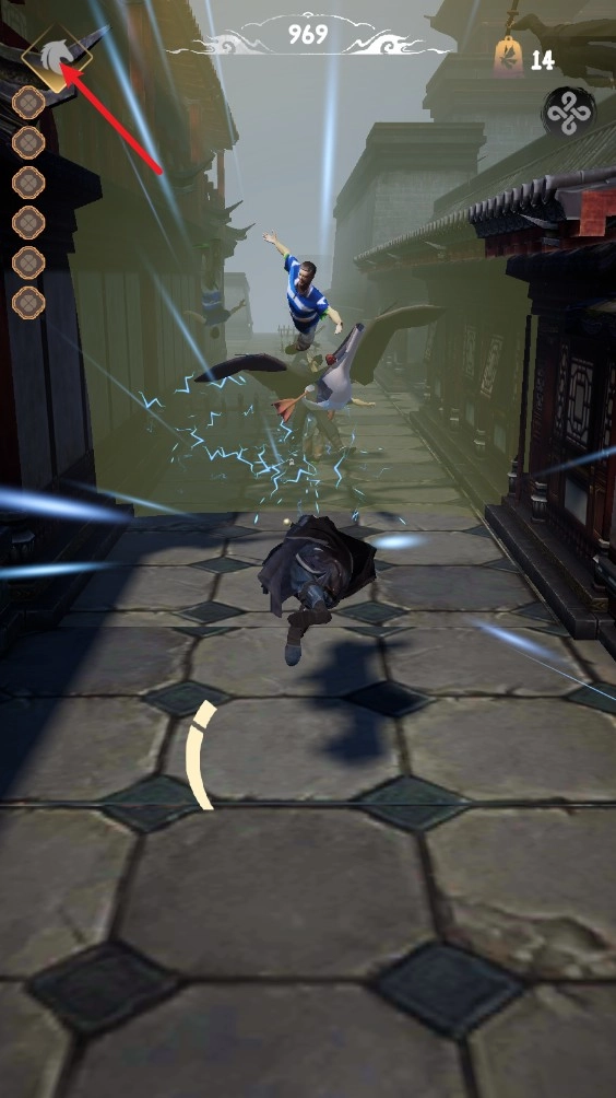 5、跳跃后向着墙壁的方向滑动屏幕即可飞檐走壁,但是会消耗能量条。